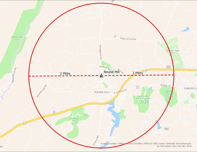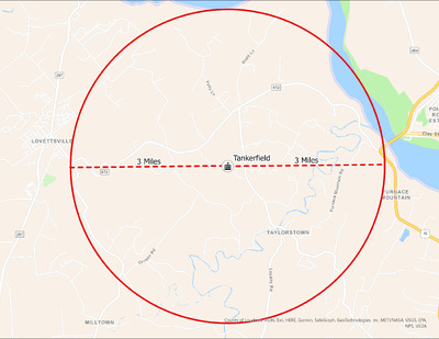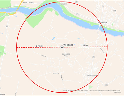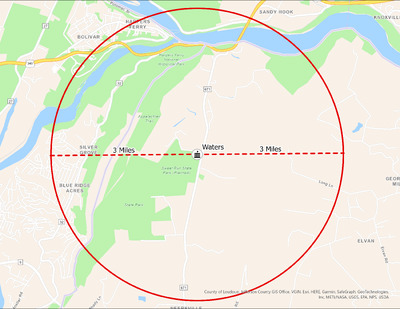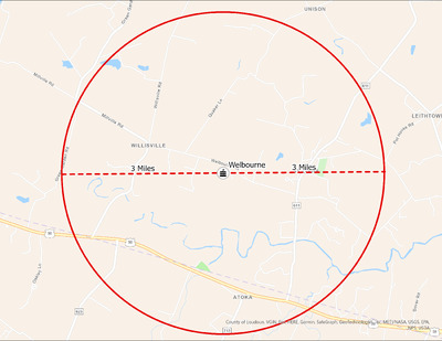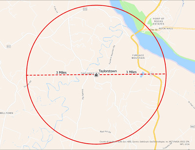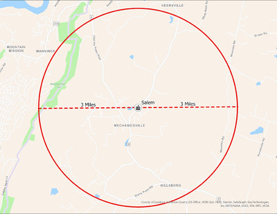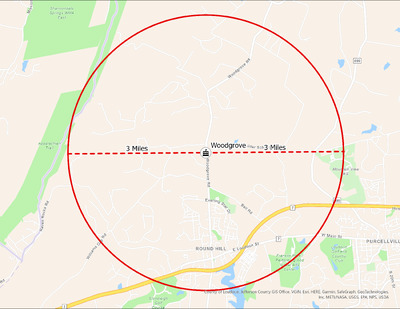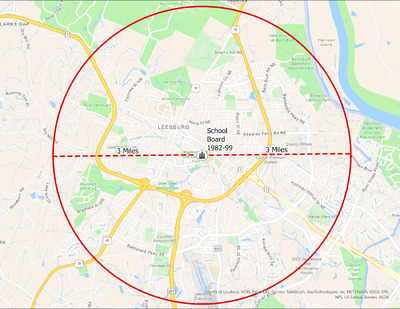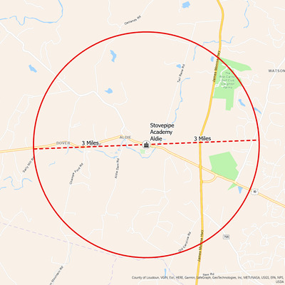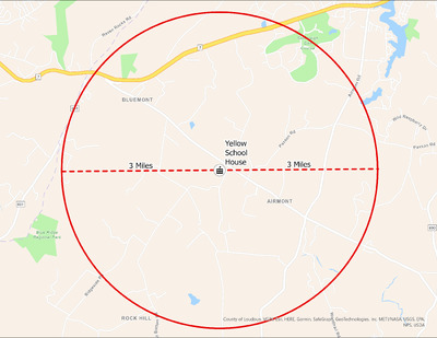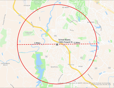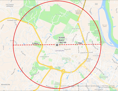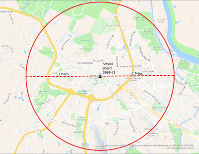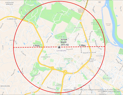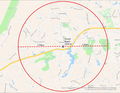 It's estimated that the maximum distance students would have walked to this school is 3 miles one way. The graphic shows the area from which students may have walked to this school.