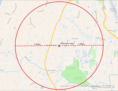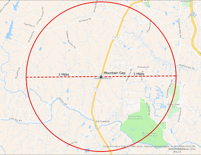 It's estimated that the maximum distance students would have walked to this school is 3 miles one way. The graphic shows the area from which students may have walked to this school.