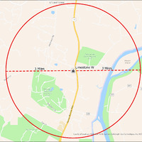 It's estimated that the maximum distance students would have walked to this school is 3 miles one way. The graphic shows the area from which students may have walked to this school.