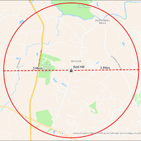 It's estimated that the maximum distance students would have walked to this school is 3 miles one way. The graphic shows the area from which students may have walked to this school.