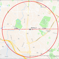 It's estimated that the maximum distance students would have walked to this school is 3 miles one way. The graphic shows the area from which students may have walked to this school.