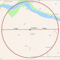 It's estimated that the maximum distance students would have walked to this school is 3 miles one way. The graphic shows the area from which students may have walked to this school.
