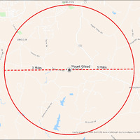 It's estimated that the maximum distance students would have walked to this school is 3 miles one way. The graphic shows the area from which students may have walked to this school.