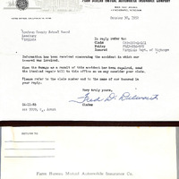 - October 30 1952 Farm Bureau Mutual Insurance claim CA-9-2001-141 - Fred D Dilworth - return envelope